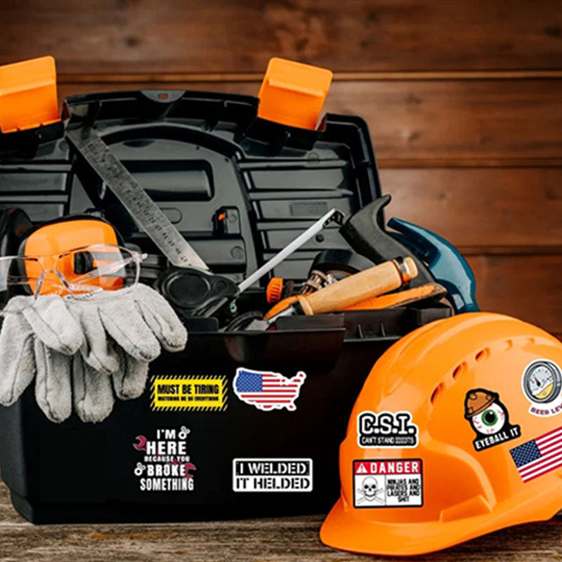 MULTI-FUNCTIONAL USE: These stickers adhere to most smooth surfaces such as hard hats, toolboxes, helmets, cars, toilet surface and more. They are versatile and can be used for labeling various items.